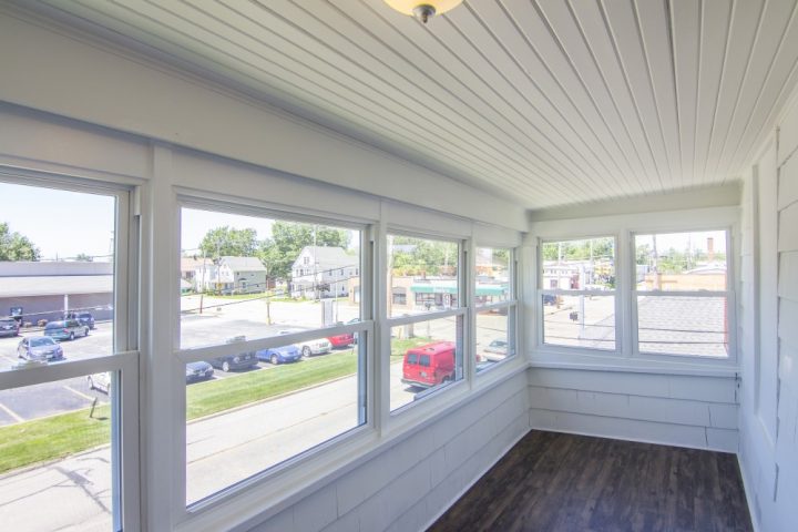 This is the upper unit of a duplex. Not an apartment complex. It features a private entrance leading to the space. New kitchen, ceiling fans, plumbing and lighting are just some of the upgrades to this apartment. A large balcony porch with wall-to-wall windows offer a great vantage point to the street below. It is conveniently located just blocks from historic downtown Willoughby, and seconds from route 2.